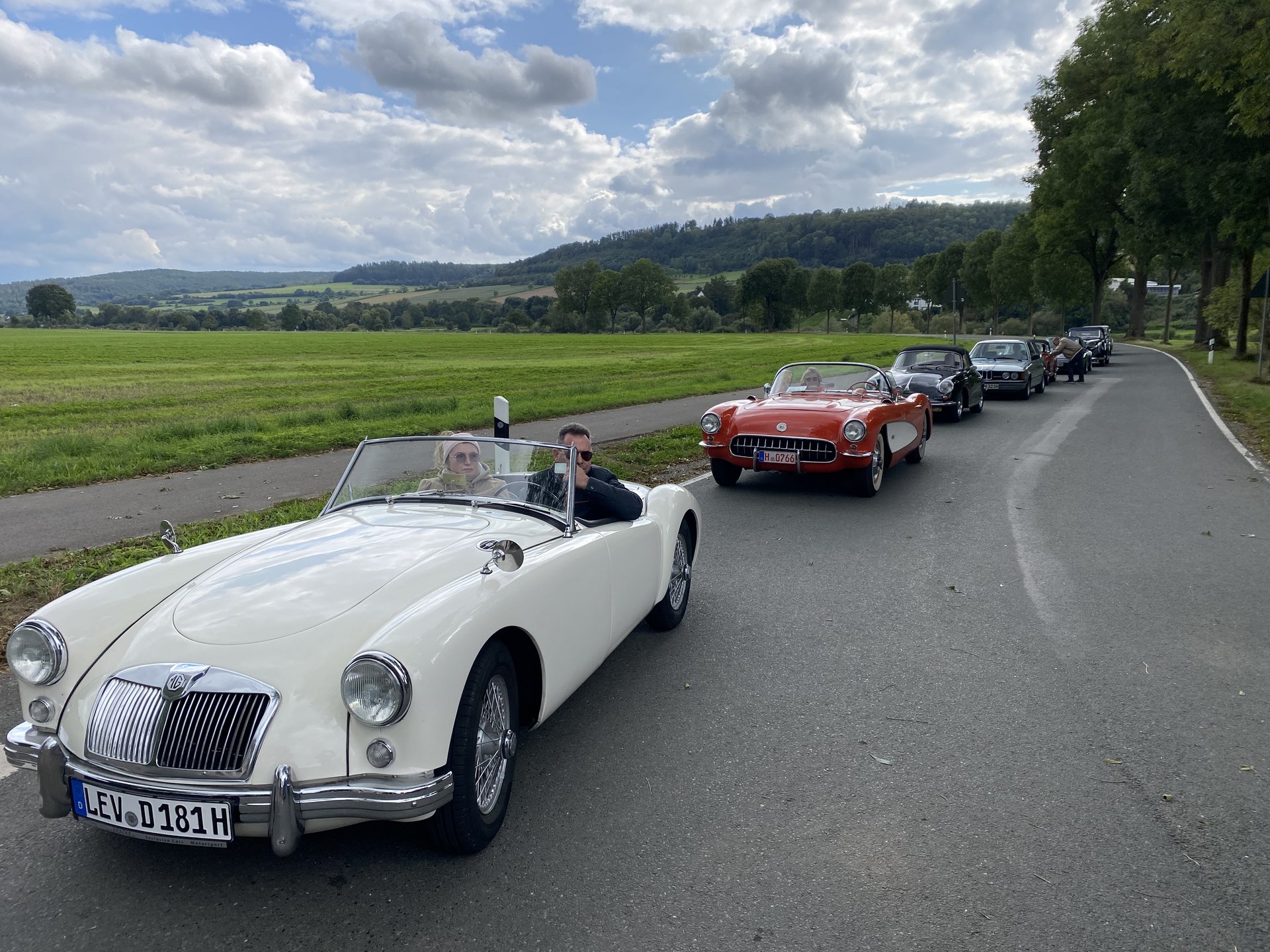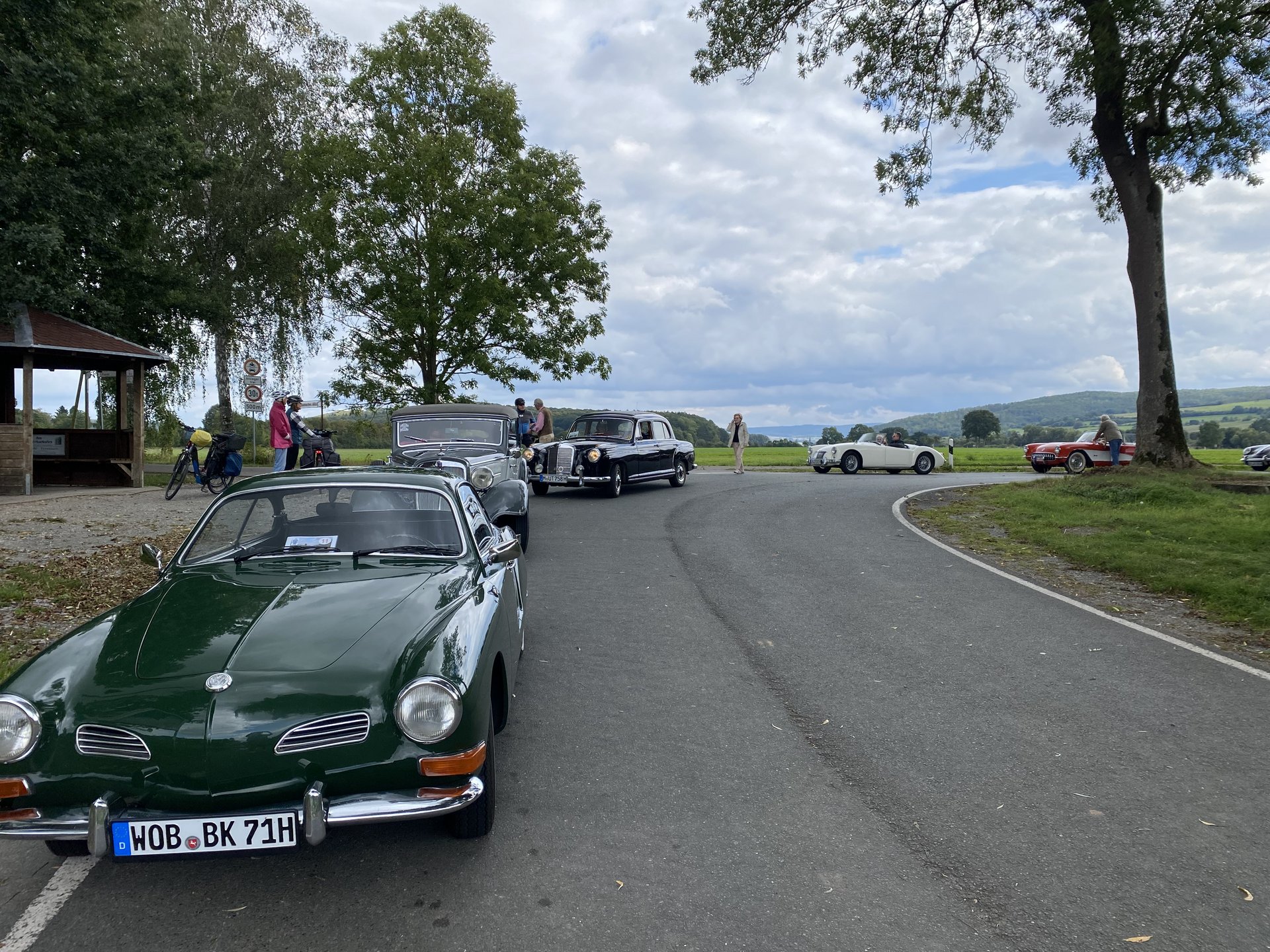 Wir fuhren mit Blick auf die Weser, die Berge an der Weser oder kreuzten die Weser mit einer Fähre. Die Straßen mit ihren Steigungen, Kurven und Serpentinen erinnerten oft an Pässe in den Alpen was die Fahrtüchtigkeit der Historischen Fahrzeuge und der Insassen herausforderte.