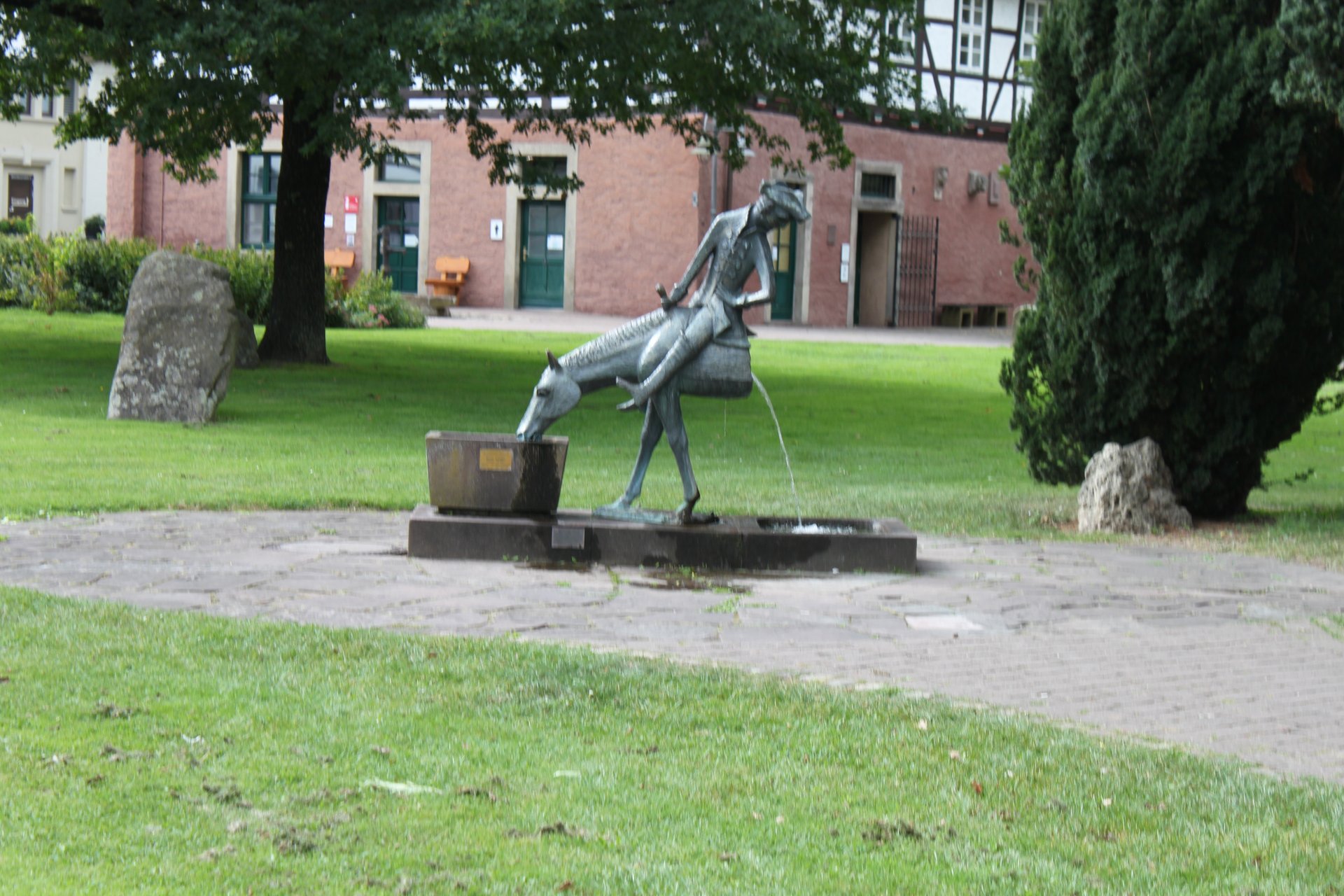 Danach ging es mit der Fähre über die Weser und nach Bodenwerder zum gemeinsamen zünftigen Mittagessen. Natürlich wurde auch der Baron von Münchhausen besucht, der hier immer noch auf seiner Kanonenkugel sitzt!!